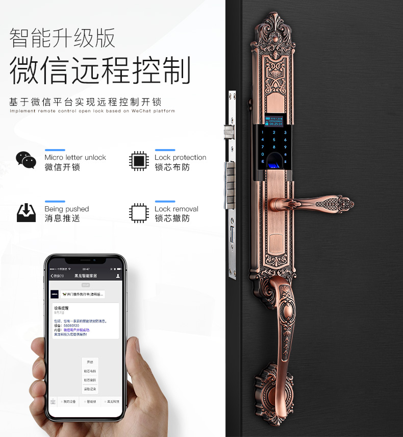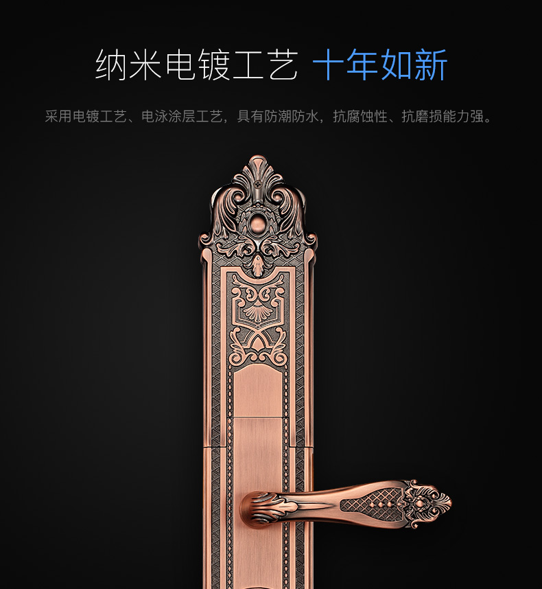 黑龍HERON 指紋密碼電子智能門鎖防盜門歐式豪華別墅雙開門 紅古銅+手動滑蓋