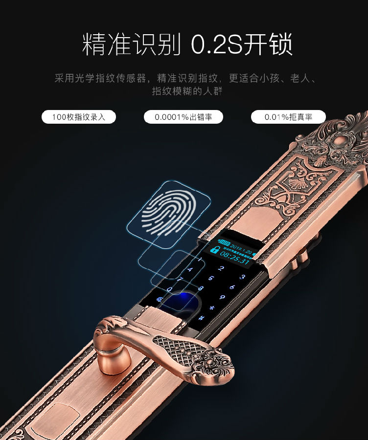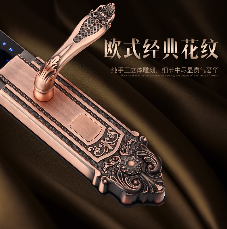 青古銅HERON自動滑蓋指紋鎖家用防盜智能密碼電子門鎖A6033\A6039_黑龍