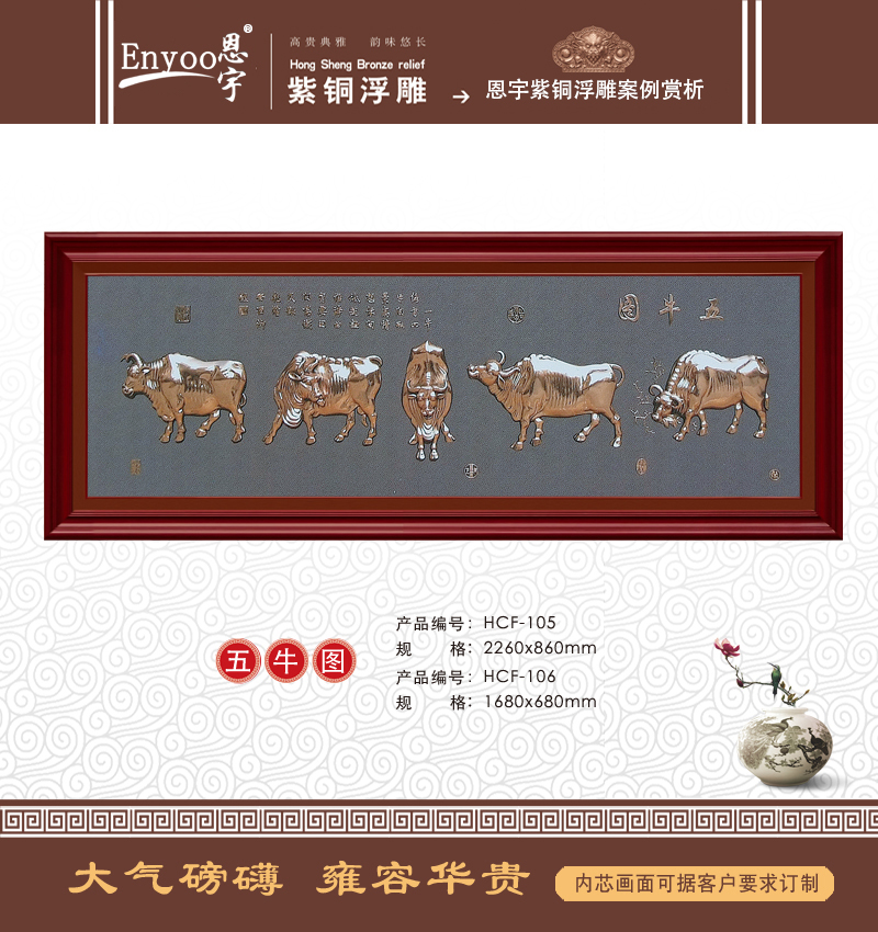 銅飾壁畫-五牛圖
