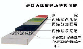 這是一種現(xiàn)場澆鋪用刮板制作在瀝青混凝土上或鋼盤混凝土結(jié)構(gòu)地面上的新型材,其工藝主要分為找平結(jié)合層、加強(qiáng)層、耐磨層等多層做法,還有含膠粒的多層做法這種面層材料及工藝的優(yōu)點是平整度高、表面硬度高、耐磨、抗曬、色澤鮮艷、使用壽命長便于管理和維修。這種面層材質(zhì)穩(wěn)定的籃球場,球員場上跑動舒服,是一種既可供娛樂打球也可用做正規(guī)比賽的高檔次籃球場地。