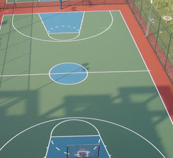 這是一種現(xiàn)場(chǎng)澆鋪用刮板制作在瀝青混凝土上或鋼盤混凝土結(jié)構(gòu)地面上的新型材,其工藝主要分為找平結(jié)合層、加強(qiáng)層、耐磨層等多層做法,還有含膠粒的多層做法這種面層材料及工藝的優(yōu)點(diǎn)是平整度高、表面硬度高、耐磨、抗曬、色澤鮮艷、使用壽命長(zhǎng)便于管理和維修。這種面層材質(zhì)穩(wěn)定的籃球場(chǎng),球員場(chǎng)上跑動(dòng)舒服,是一種既可供娛樂(lè)打球也可用做正規(guī)比賽的高檔次籃球場(chǎng)地。