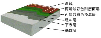 這是一種現(xiàn)場澆鋪用刮板制作在瀝青混凝土上或鋼盤混凝土結(jié)構(gòu)地面上的新型材,其工藝主要分為找平結(jié)合層、加強(qiáng)層、耐磨層等多層做法,還有含膠粒的多層做法這種面層材料及工藝的優(yōu)點(diǎn)是平整度高、表面硬度高、耐磨、抗曬、色澤鮮艷、使用壽命長便于管理和維修。這種面層材質(zhì)穩(wěn)定的網(wǎng)球場近年來已開始在世界各地普遍采用,管它球速稍快,較之其它類型球場,球的彈跳平衡,球員場上跑動舒服,是一種既可供娛樂打球也可用做正規(guī)比賽的高檔次網(wǎng)球場地。