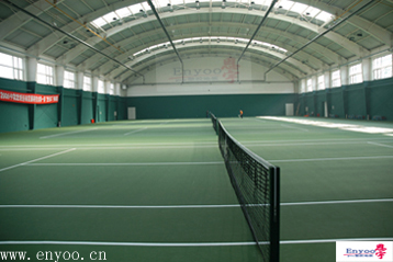 中高檔網(wǎng)球場地建議選用選擇綠色Enyoo4.5mm磨砂紋PVC塑膠運動地板,或藍色Enyoo4.5mm磨砂紋PVC塑膠運動地板。專業(yè)運動地板的性能,更高的性價比無疑是中高檔室內(nèi)網(wǎng)球館的最佳選擇。